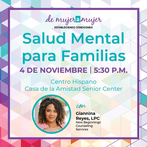 - Únase a nosotros para una conversación empoderadora que brindará educación, apoyo y aliento a mujeres de todos los orígenes que desean fortalecer a sus familias a través del poder de la salud mental.